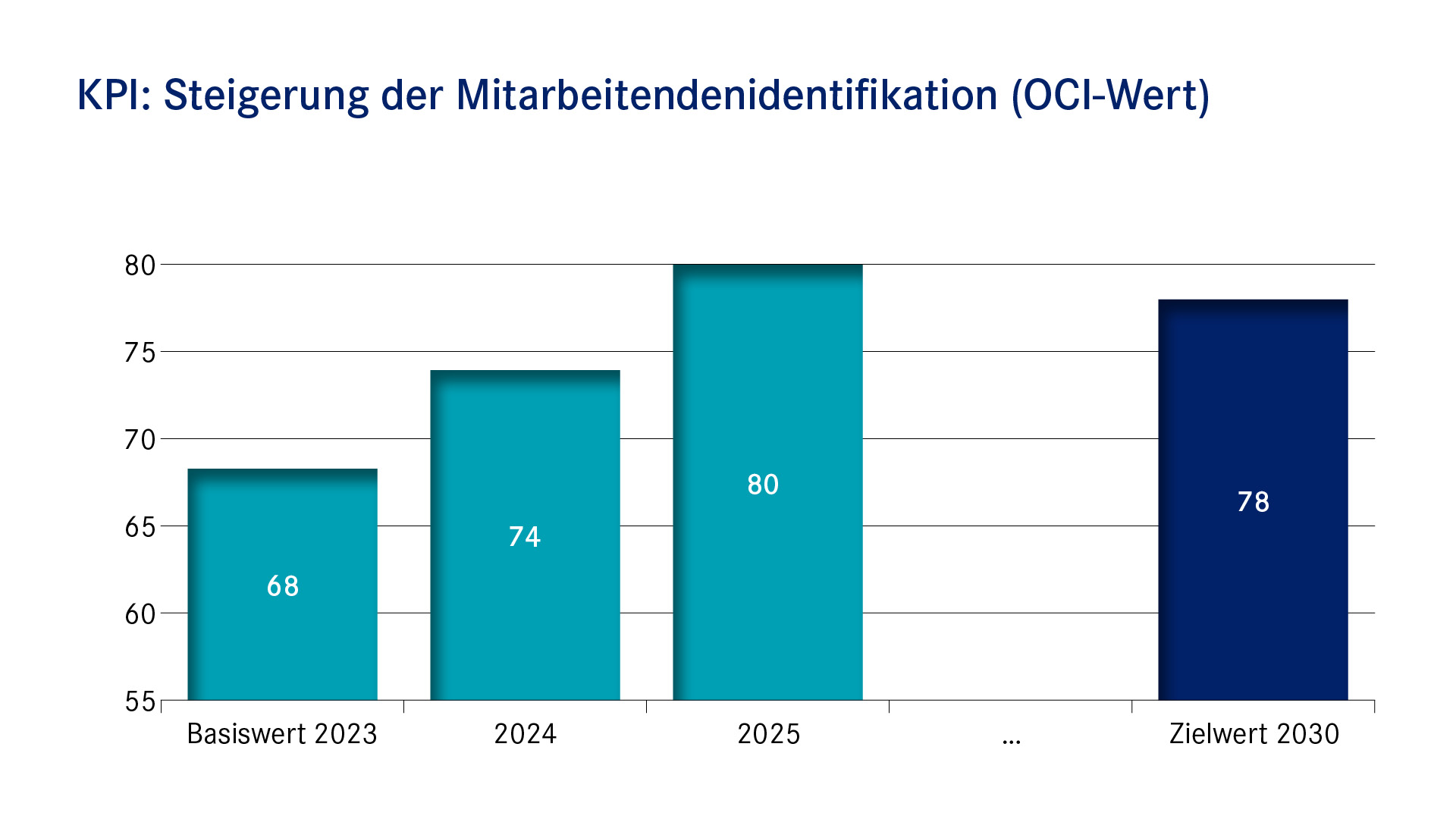 Der Organizational Commitment Index (OCI) misst die Bindung und Identifikation der Mitarbeitenden mit der apoBank. Ziel ist es, diesen Wert dauerhaft zu steigern.