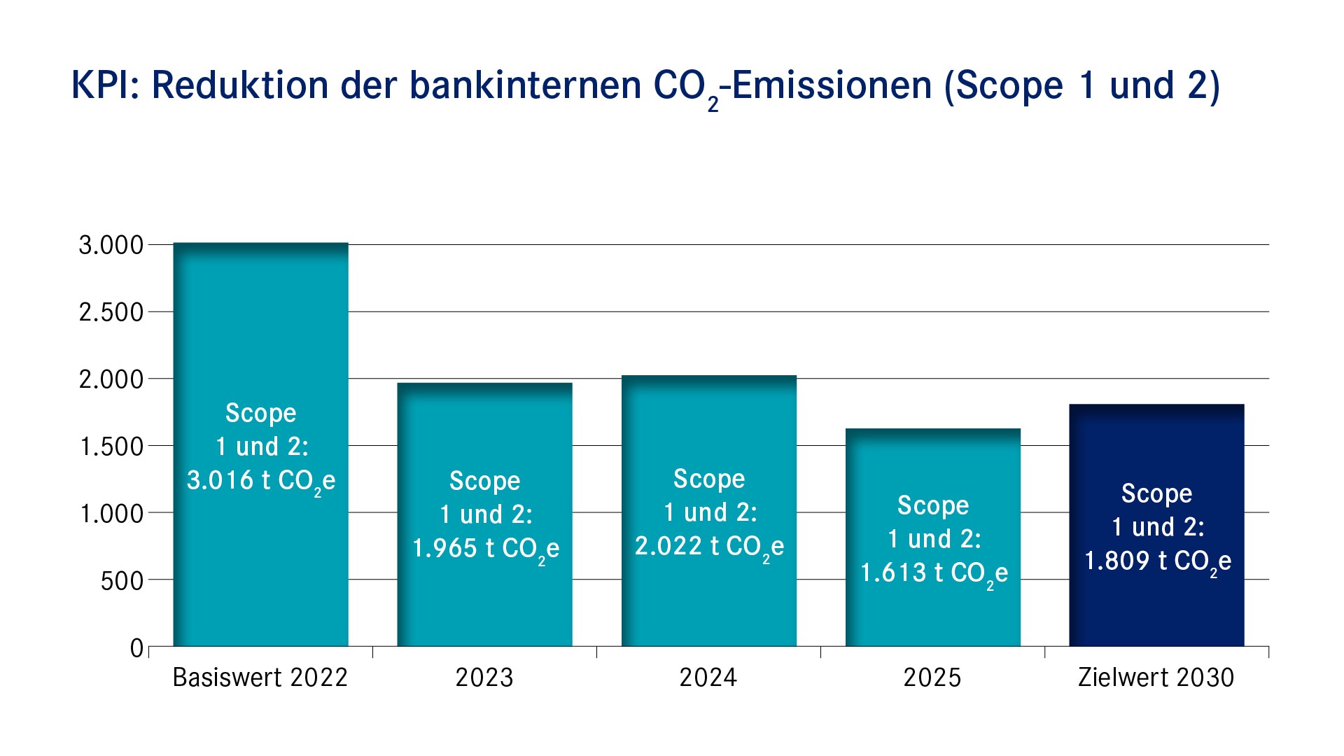 CO2-Emissionen im eigenen Geschäftsbetrieb sollen durch konkrete Maßnahmen in den Scopes 1 und 2 dauerhaft gesenkt werden.
