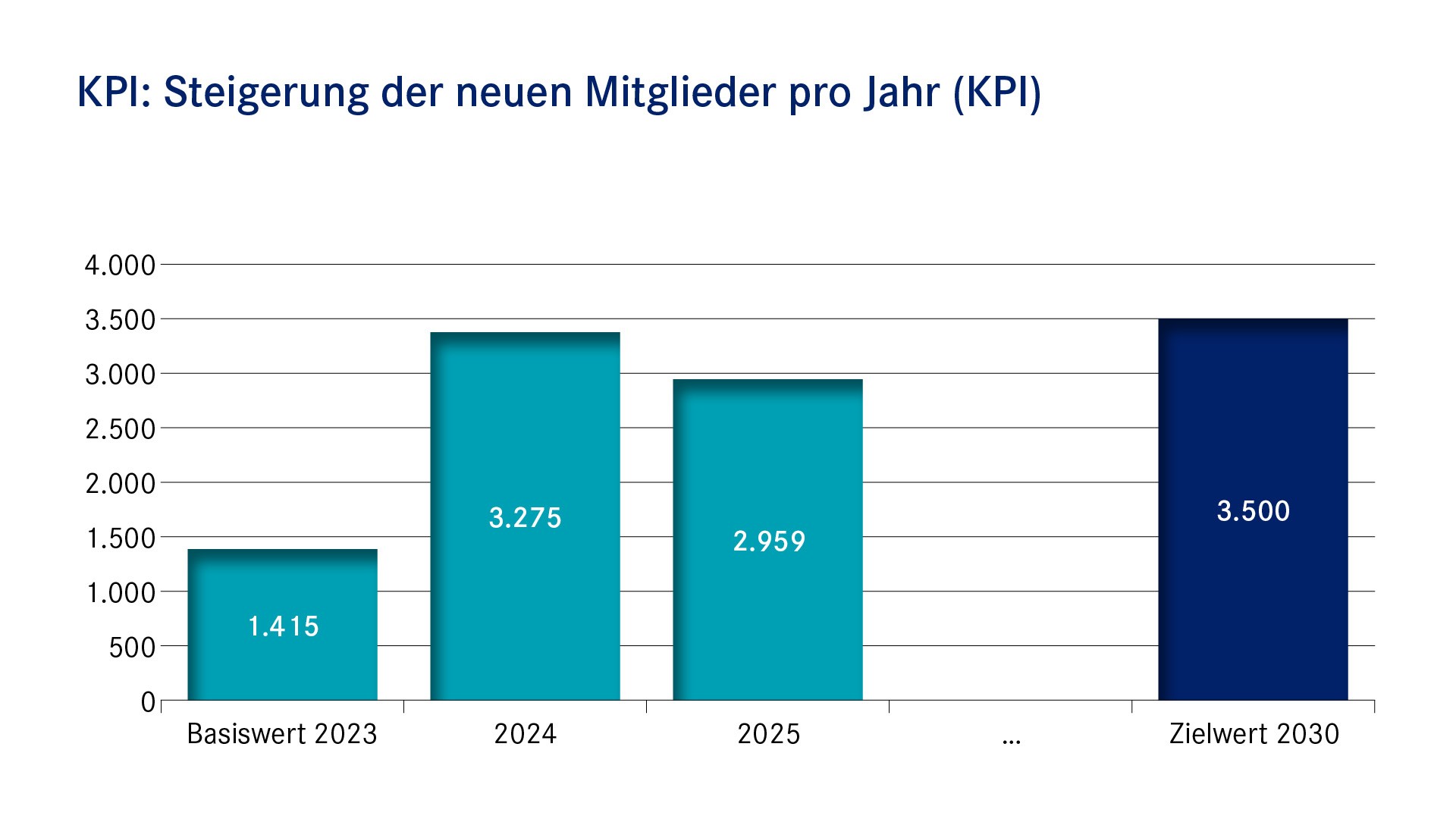 Die Anzahl der neuen Mitglieder pro Jahr entspricht den Beitritten ohne Mitglieder aus Übertragungen.