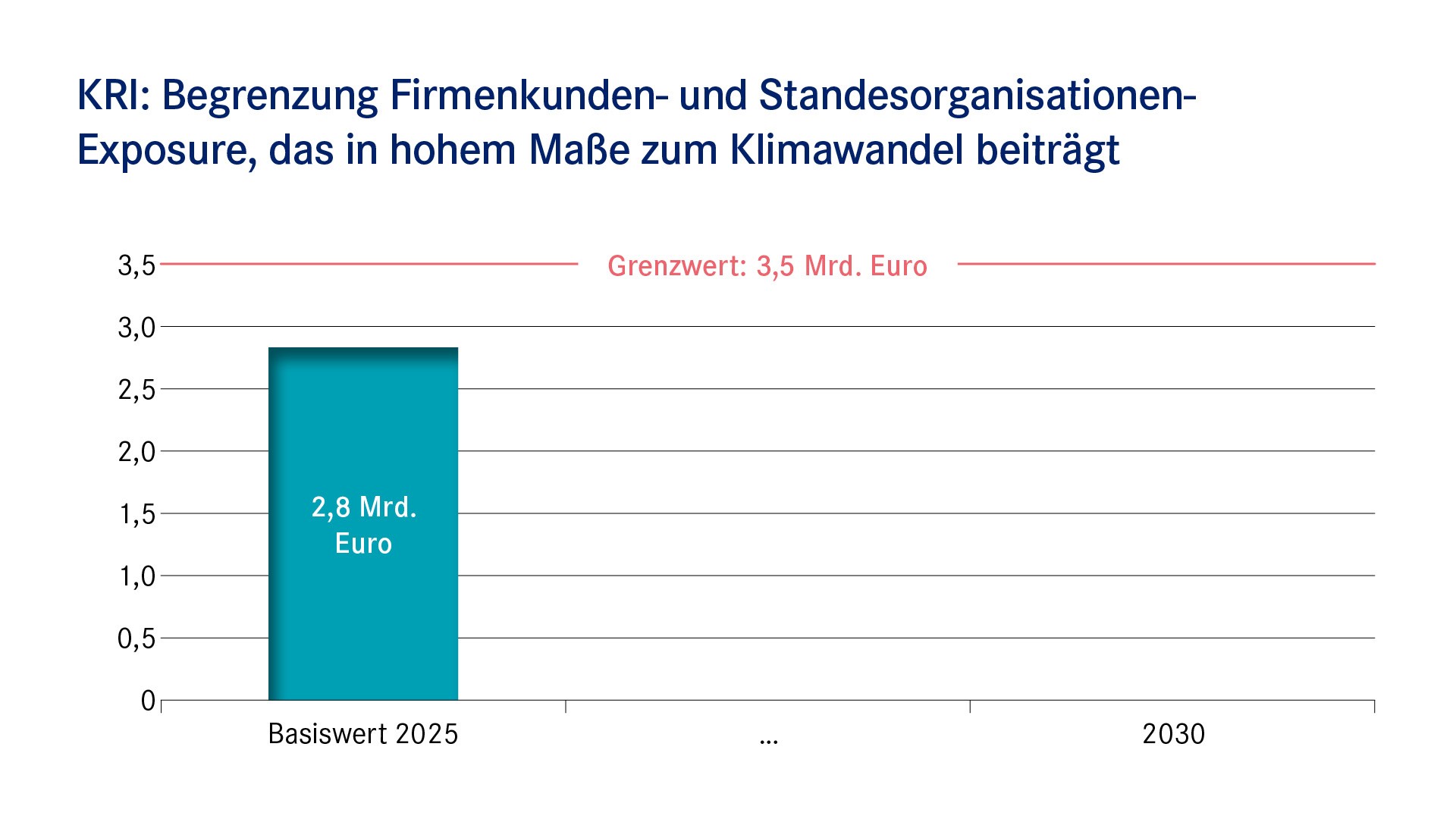 Mit der Aktualisierung des „Risk Appetite Framework (RAF) Klima- und Umweltrisiken“ per 30. September 2025 wurde der vorherige KRI:„Portfolio mit hohem transitorischem Risiko mit einem definierten Schwellenwert von < 2,050 Mrd. Euro ersetzt.