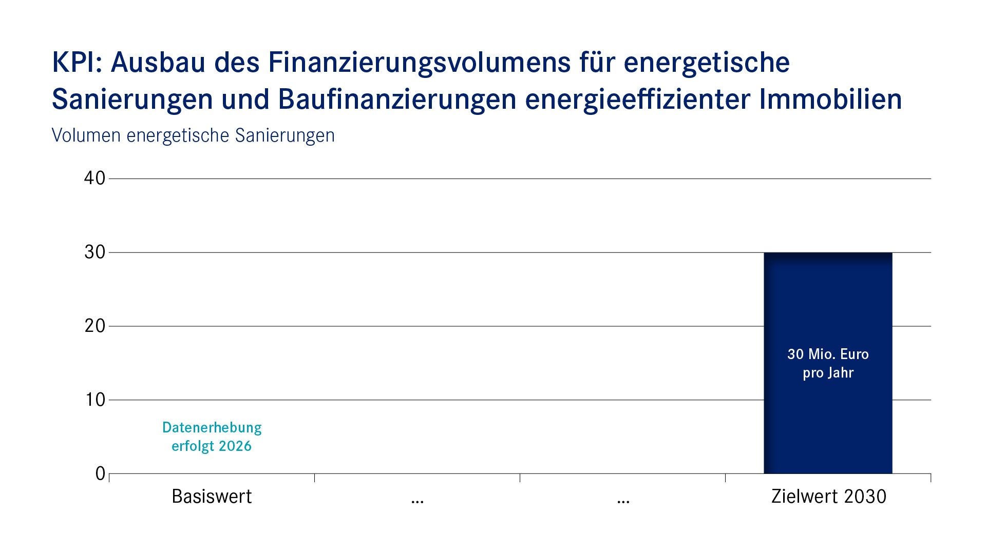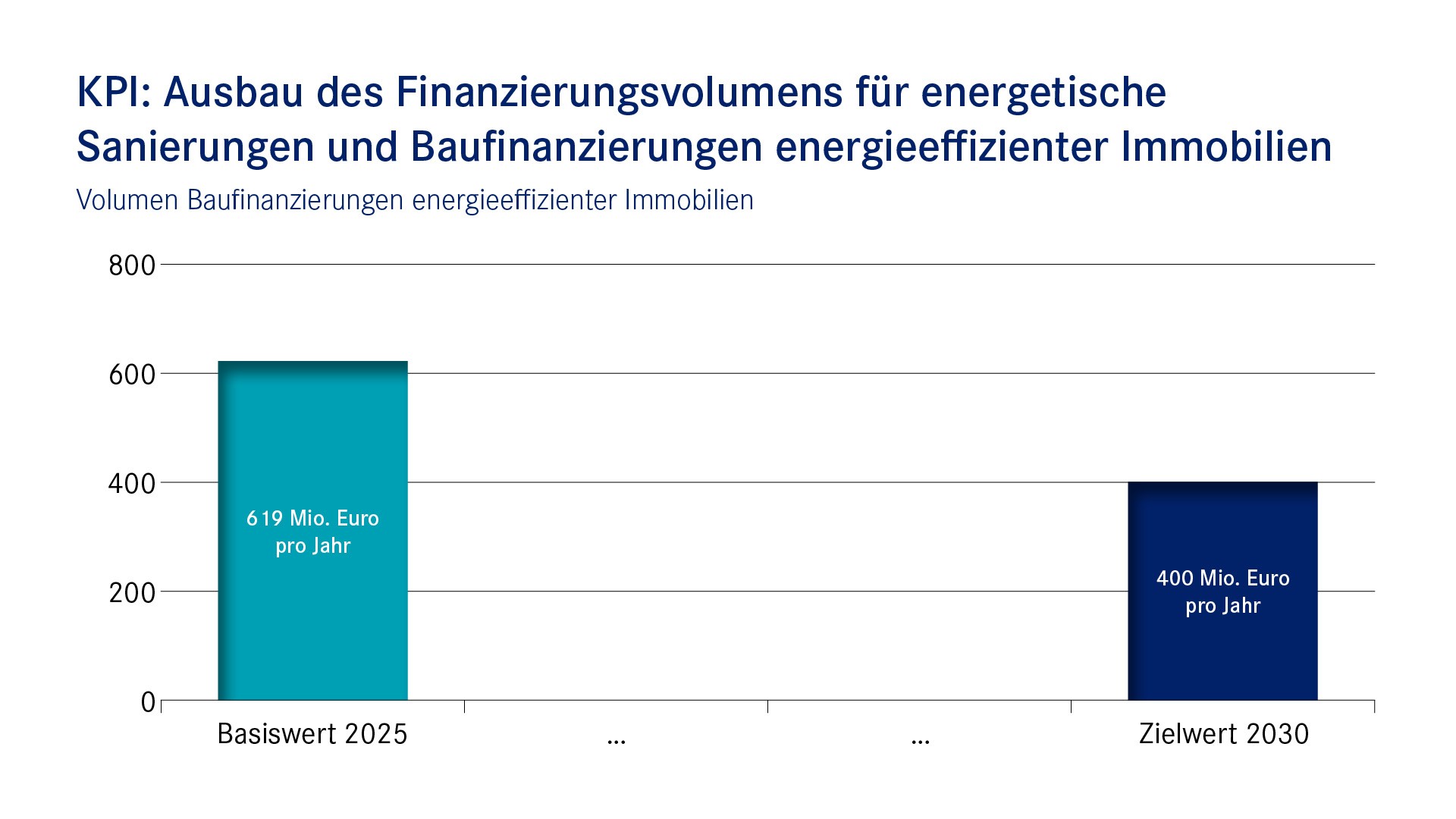 - Zum Stichtag 31.12.2025 umfasst das Finanzierungsvolumen für Baufinanzierungen energieeffizienter Immobilien unter anderem auch Neubauten, deren Taxonomiekonformität erst nach ihrer Fertigstellung bestätigt werden kann.