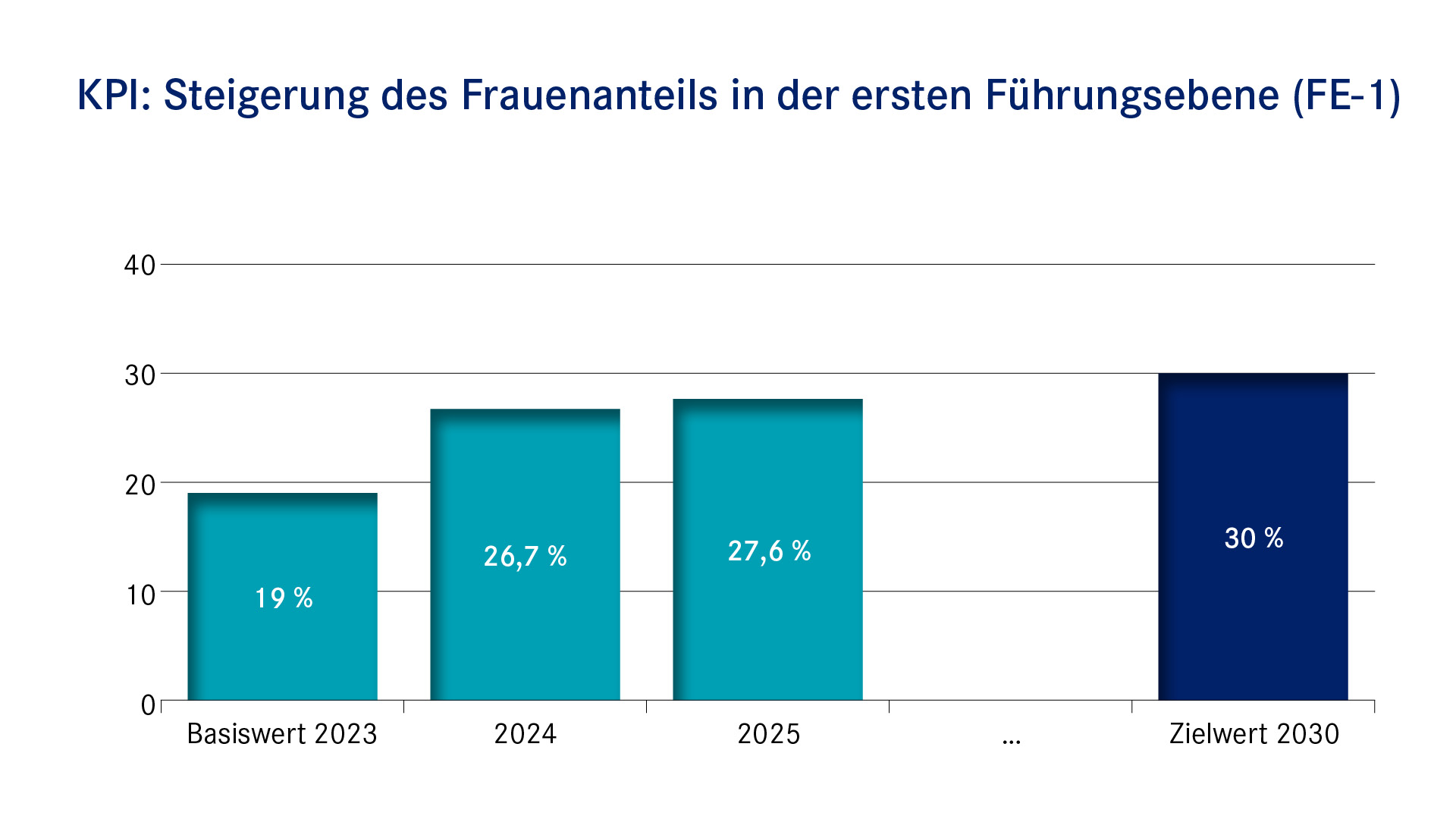 Der Frauenanteil in der ersten Führungsebene unter dem Vorstand der apoBank soll bis 2030 auf 30 % steigen.