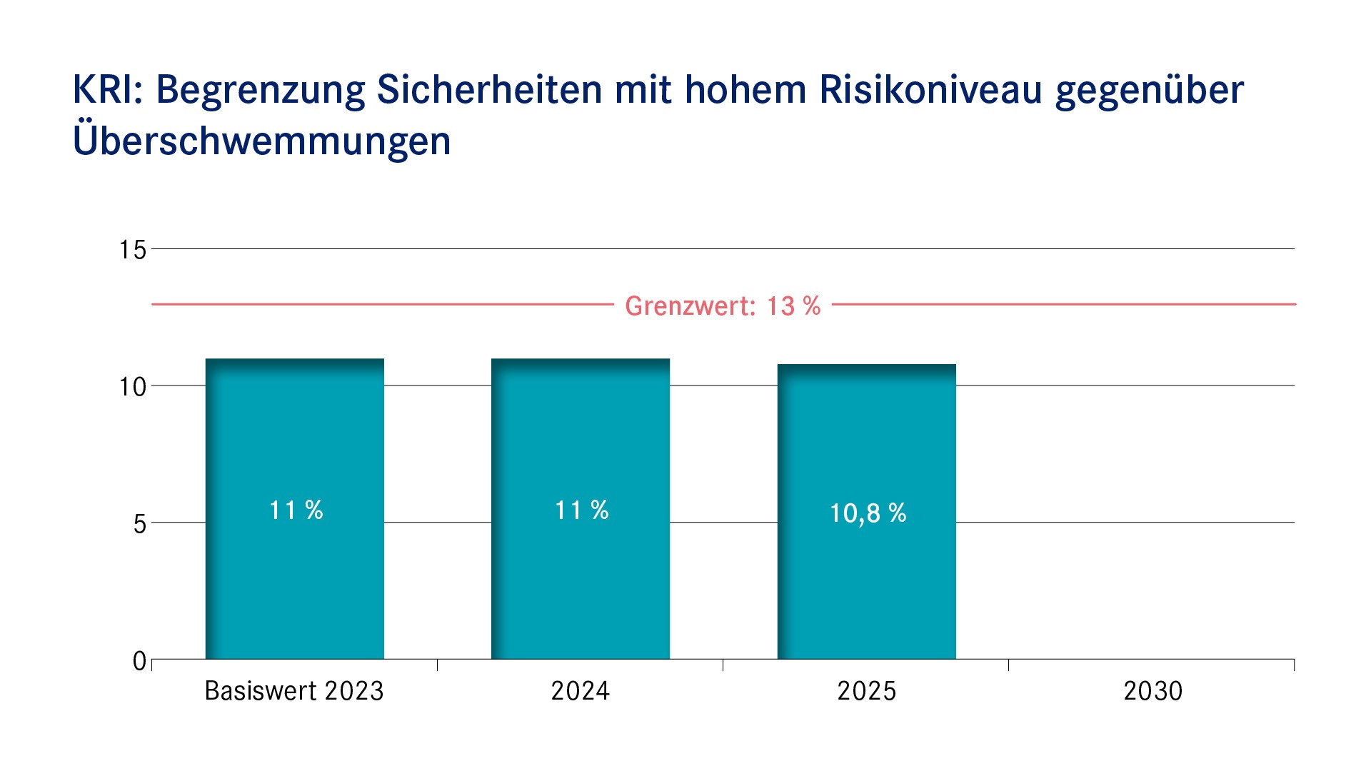 Der Anteil von Immobiliensicherheiten, die einem hohen Risiko gegenüber Überschwemmungen ausgesetzt sind, muss unterhalb des gesetzten Grenzwertes bleiben.